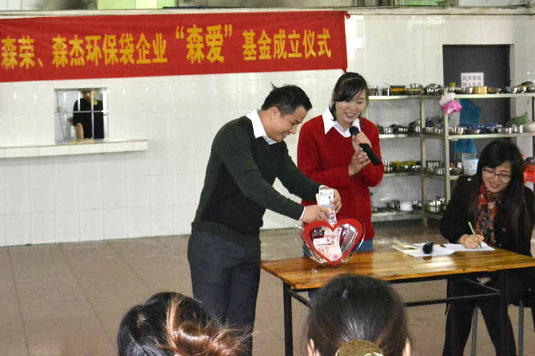 2012年12月3日這一天廣州市森榮手袋制造有限公司、廣州森杰無紡布制品實業有限公司正式成立“森愛基金”。
