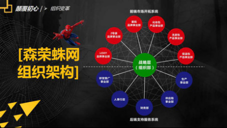 這是一個蜘蛛網,當你在蜘蛛網上做破壞,破上一個洞或幾個洞時,竟完全不影響其它部份捉蟲子,好萊塢有蜘蛛俠,根據蜘蛛網的理念,我們對組織架構進行創新變革,森榮蛛網式組織架構形成,前端為市場開拓系統,以產品與品牌為維度分為多個事業部。后端為支持服務系統,中間由各個事業部與公司高層成立組織部,相當于武俠中的長老會或是國家的中央常委,共同參與公司大事的商議與決策制定。每個部門相對地獨立而又相互支持,除研發、人事和財務之外,其它各個部門都實行市場化原則,獨立經營與核算,享受成果也承擔責任。當其中一個銷售部接到訂單,第一順序先與公司廠部進行溝通,本廠生產部是否適合生產,適合的話銷售部對生產部形成采購關系,生產部需按采購合約按質按量按時完成生產,最后一手交錢一手交貨。若不符合或若有任何問題,則按合同執行部門與部門之間的賠付。如果不適合則由公司的供應鏈部門進行對接,若供應鏈沒有適合的供應商生產的話,則可以銷售部對外采購。不管是對生產部,還是供應鏈,或是對外采購,我們實行的不是工作的交接,而是貨物與貨幣之間的交易,因為金錢是最好的檢驗標準!